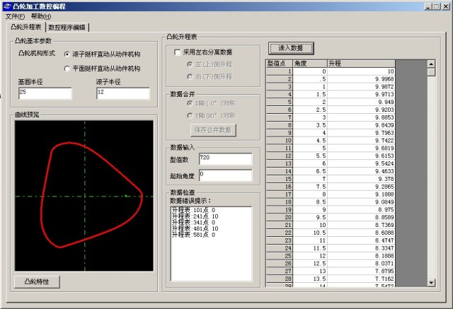 本公司生產(chǎn)的數(shù)控高速曲軸(凸輪軸)銑床采用盤銑刀點(diǎn)跟蹤方式高速銑削各種非圓截面。為精確加工各種汽油發(fā)動(dòng)機(jī)凸輪軸、柴油發(fā)動(dòng)機(jī)凸輪軸、供油泵凸輪軸等,本公司開發(fā)了《凸輪軸加工NC 程序編程系統(tǒng)》軟件。