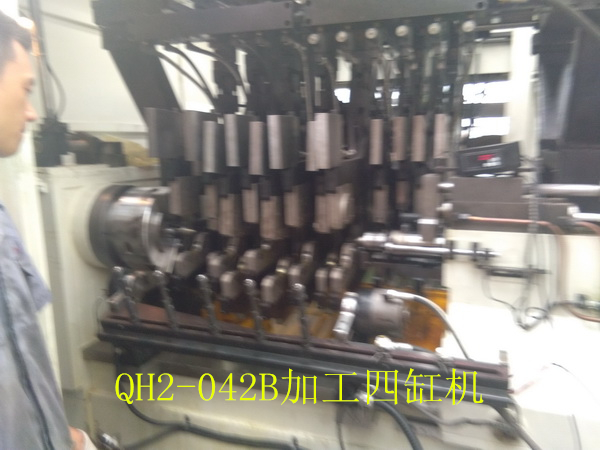 QH2-042變力曲軸圓角滾壓及滾壓校直機床(發(fā)明專利號1823602)是與武漢理工大學共同開發(fā)的一款高檔數(shù)控設備。該機床為九鉗直立布置,可以一次性對所有四缸曲軸完成的變力滾壓,自動檢測和自動滾壓校直的加工。該機床帶有測力器,自動檢測工件零位,自動檢測記錄工件加工情況和滾輪破碎自動檢測等功能,可以完全保證工件的加工質(zhì)量。具備與著名德國的圓角滾壓設備制造商Hegenscheidt公司產(chǎn)品同樣的功能,具有極高的性價比。